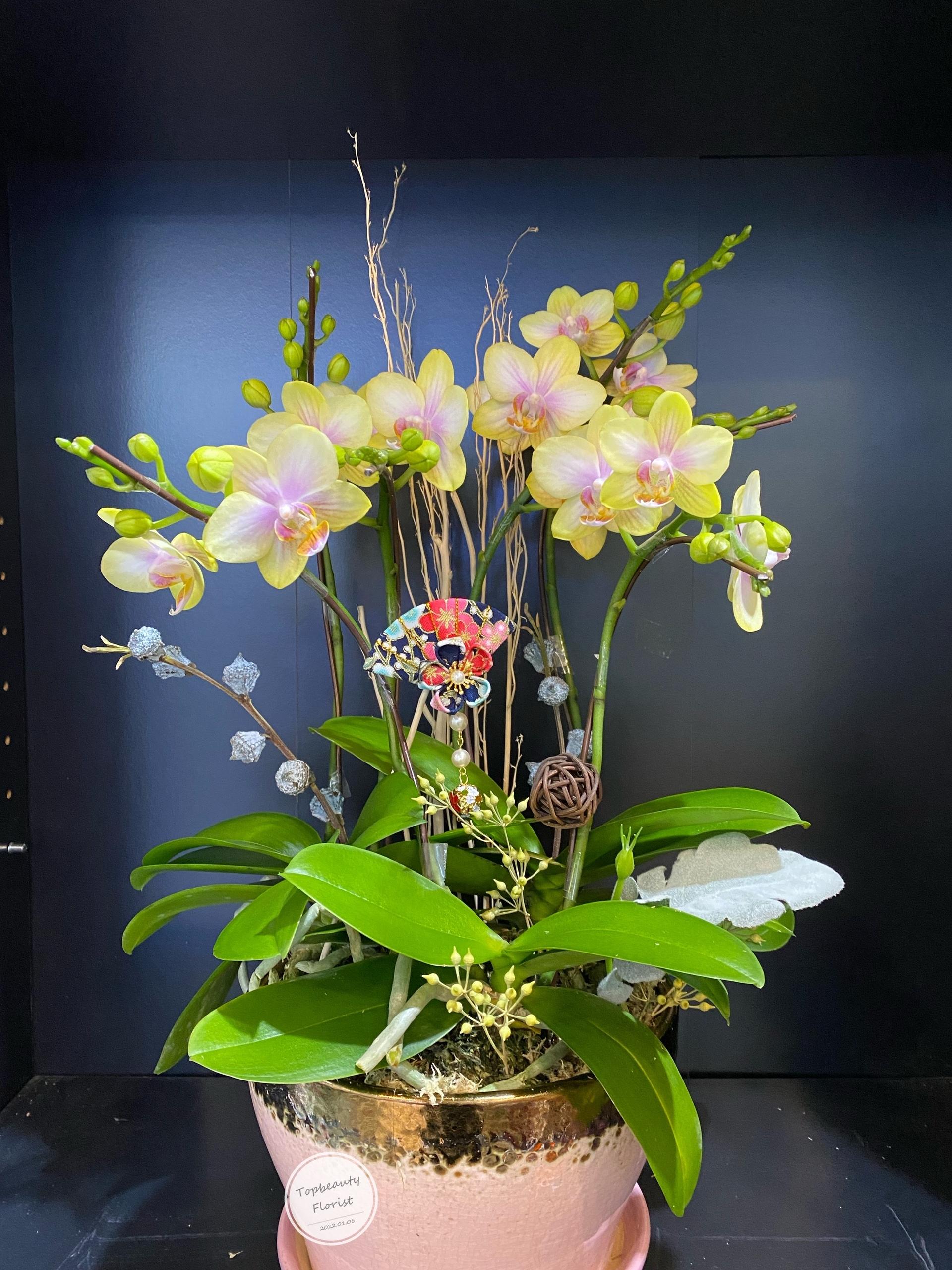 台灣蘭花中花*每件花藝品由人手製作,鮮花材屬自然產物,每枝都有其獨特的型態,及顏色的差異, 襯花及葉亦會受季節及市場供貨而有所調整, 所以圖片僅作參考