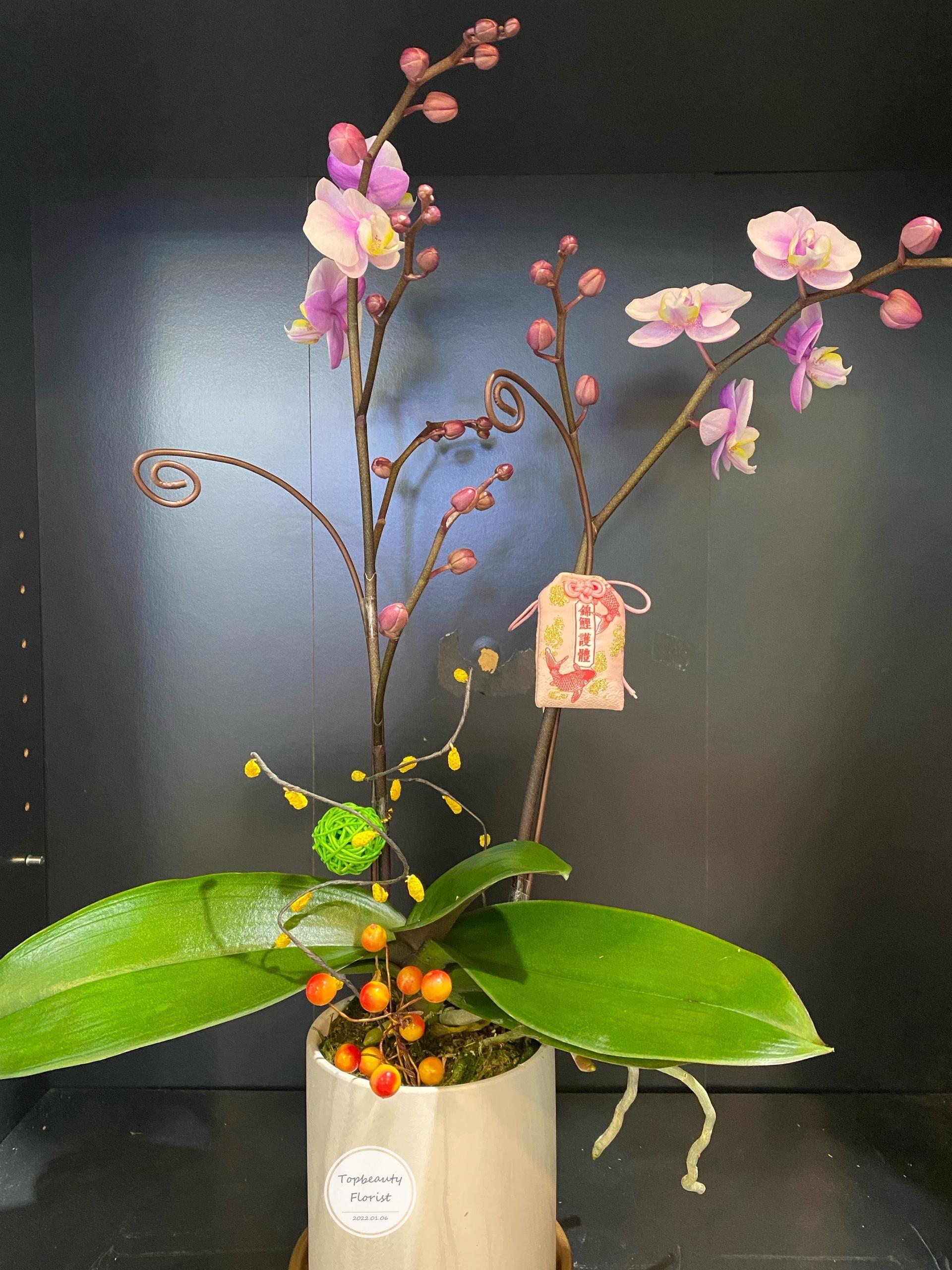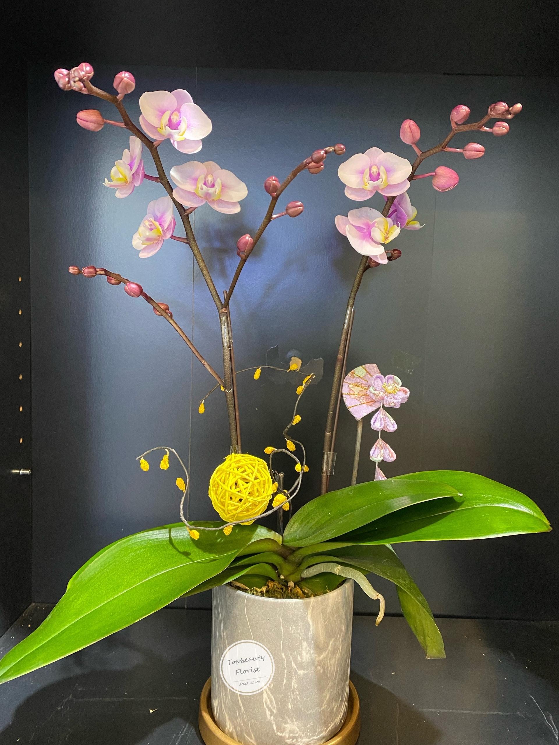 台灣蘭花大花*每件花藝品由人手製作,鮮花材屬自然產物,每枝都有其獨特的型態,及顏色的差異, 襯花及葉亦會受季節及市場供貨而有所調整, 所以圖片僅作參考