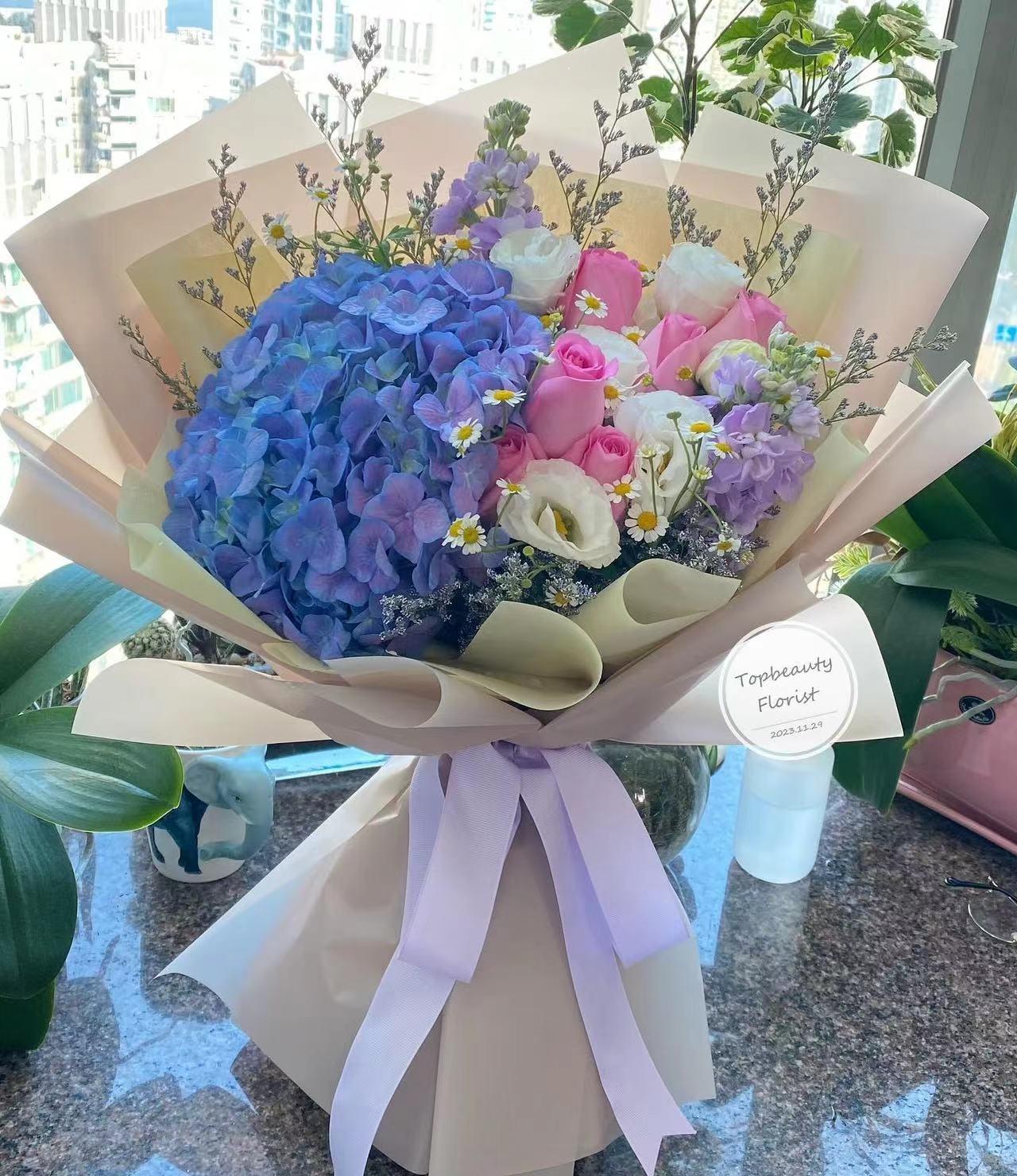 規格約:58*38cm 不包括花紙, 鮮花束,可調整主花及花紙顏色請聯絡职員,每件花藝品由人手製作,鮮花材屬自然產物,每枝都有其獨特的型態,及顏色的差異, 襯花及葉亦會受季節及市場供貨而有所調整, 所以圖片僅作參考