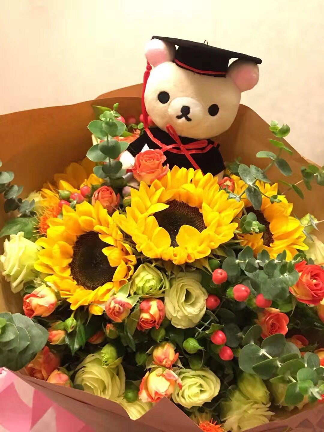 4枝向日葵小玫瑰畢業熊花束(4sunflowers bouquet)
