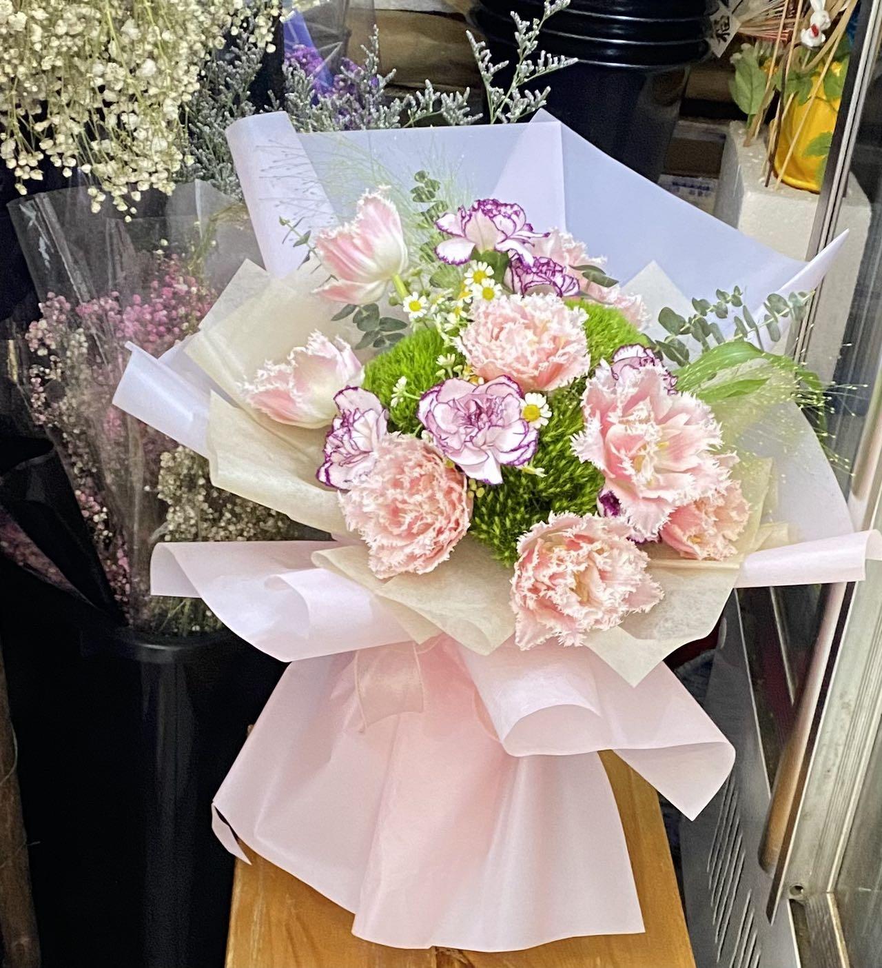 規格約:55*35cm 不包括花紙, 鮮花束,可調整主花及花紙顏色請聯絡职員,每件花藝品由人手製作,鮮花材屬自然產物,每枝都有其獨特的型態,及顏色的差異, 襯花及葉亦會受季節及市場供貨而有所調整, 所以圖片僅作參考
