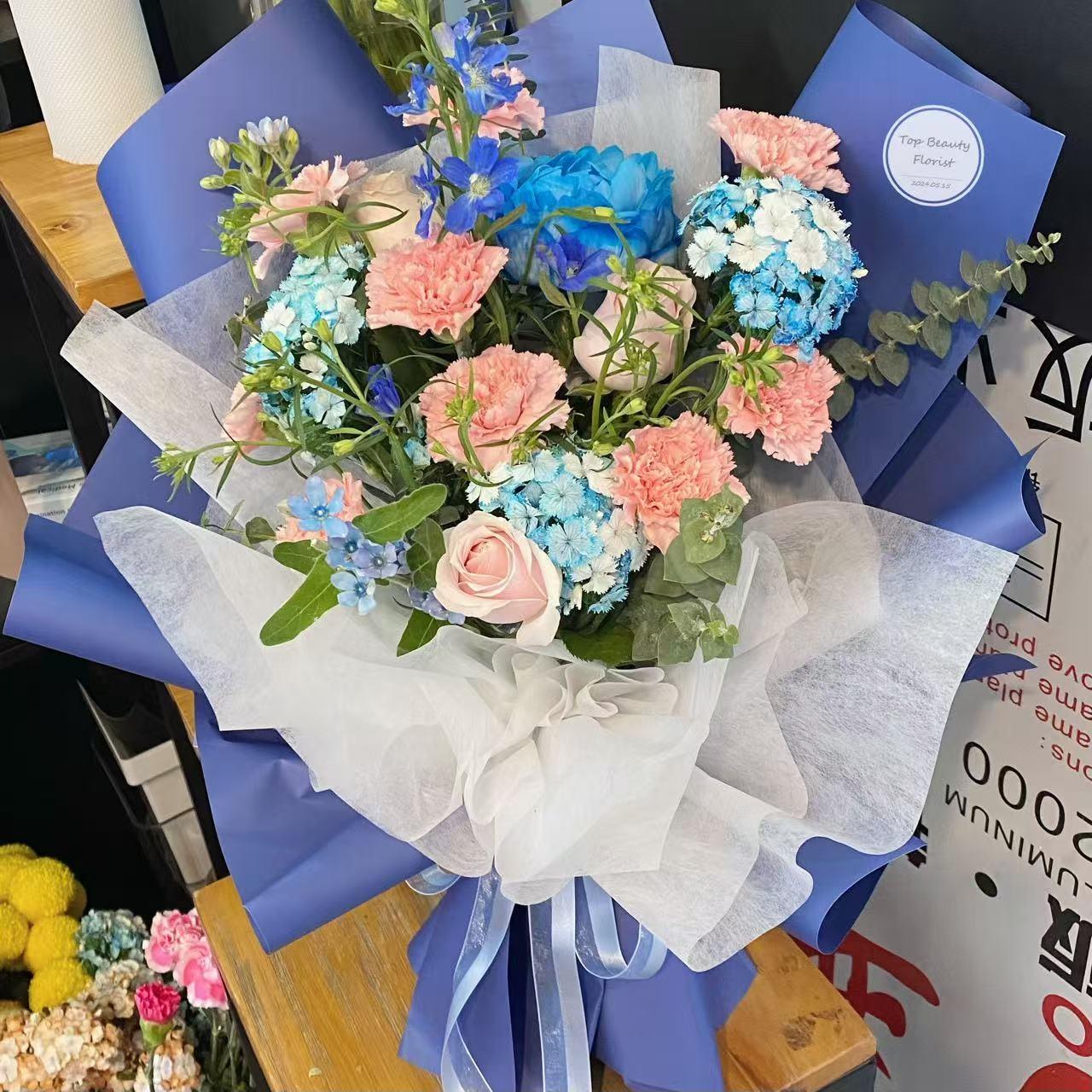 12枝雙色康乃馨蓝星花花束
