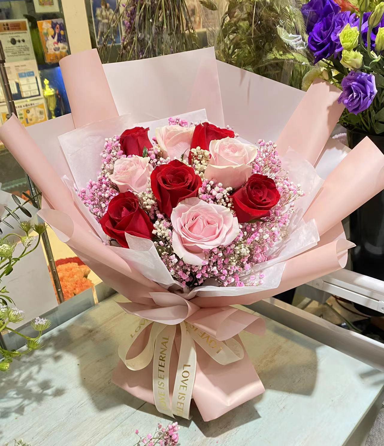 規格約:50*30cm 不包括花紙, 鮮花束,可調整主花及花紙顏色請聯絡职員,每件花藝品由人手製作,鮮花材屬自然產物,每枝都有其獨特的型態,及顏色的差異, 襯花及葉亦會受季節及市場供貨而有所調整, 所以圖片僅作參考