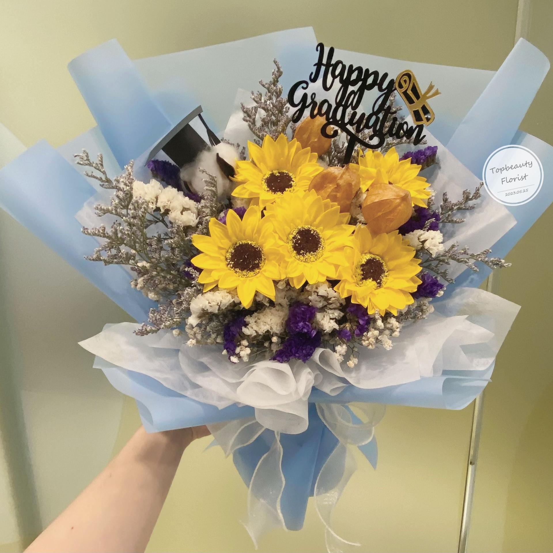 非鮮花束, 要調整主花及花紙顏色請聯絡职員,每件花藝品由人手製作,鮮花材屬自然產物,每枝都有其獨特的型態,及顏色的差異, 襯花及葉亦會受季節及市場供貨而有所調整, 所以圖片僅作參考