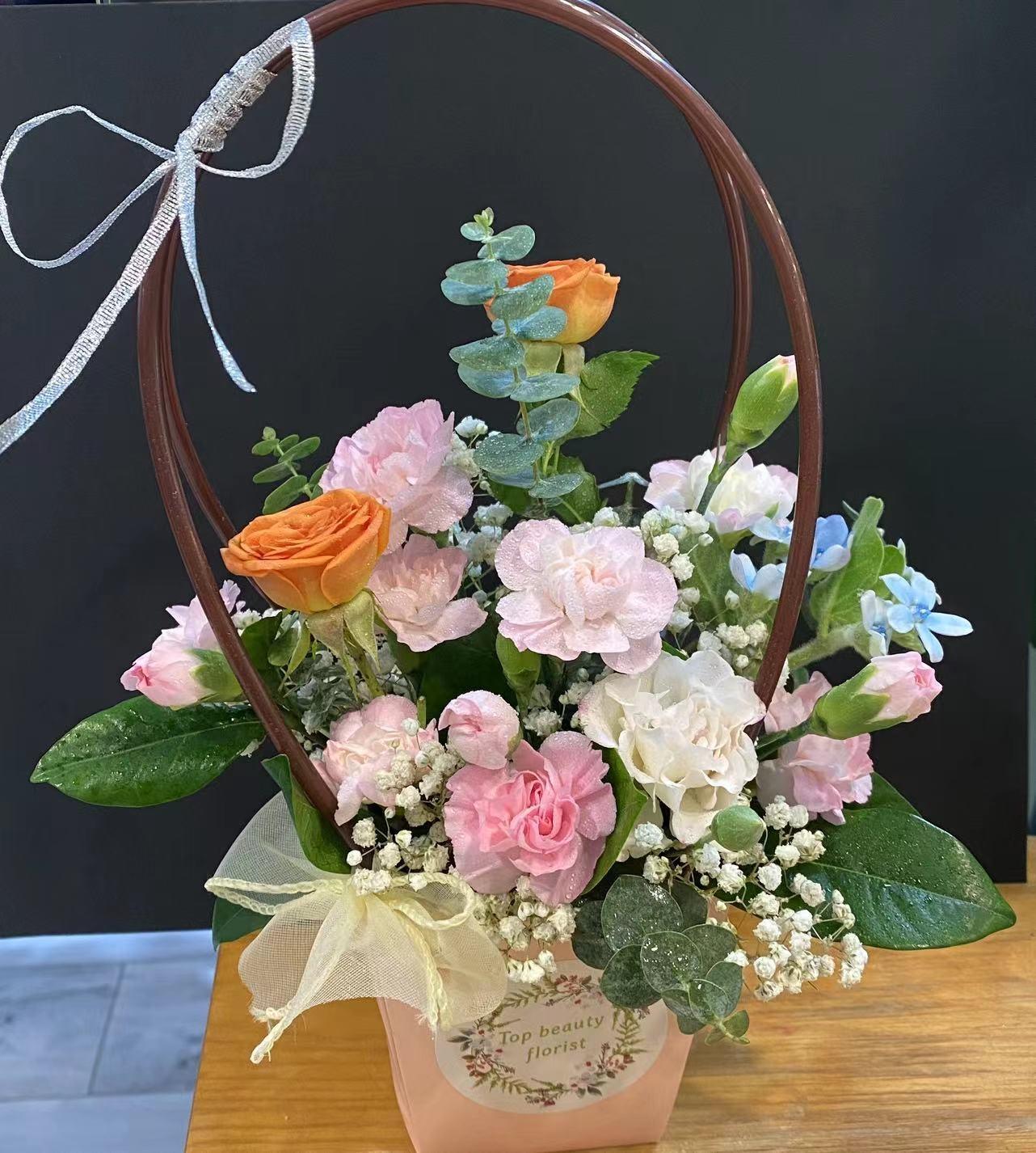 規格約:40*38cm , 鮮花盒,可調整主花及花紙顏色請聯絡职員,每件花藝品由人手製作,鮮花材屬自然產物,每枝都有其獨特的型態,及顏色的差異, 襯花及葉亦會受季節及市場供貨而有所調整, 所以圖片僅作參考